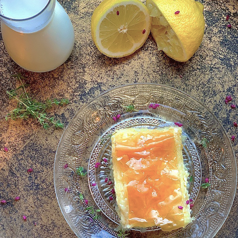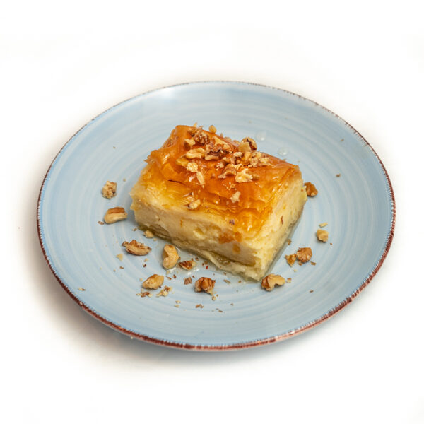 The best Greek dessert ever: semolina pudding, “puff pastry” phyllo crispy and syrupy.